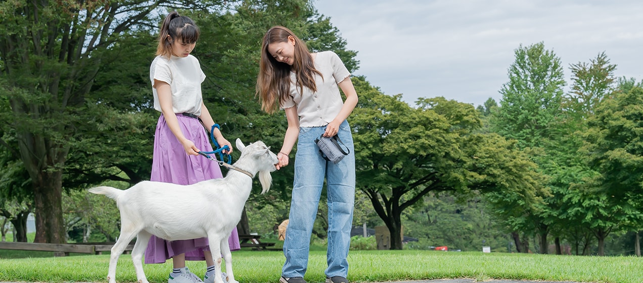 The grounds change color depending on the season, with cherry blossoms in spring, fresh greenery in summer, and autumn leaves in fall, and there are plenty of photogenic spots and sweets. You can also interact with a variety of animals through programs and events that you wouldn't normally experience, such as walking with sheep and goats.