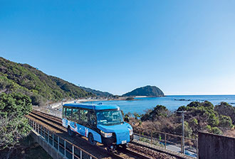 The Asahigashi Line, which connects Kaiyo Town, Tokushima , and Toyo Town, Kochi (some trains run to Muroto City on Saturdays, Sundays, and holidays), is one of the few lines in the world where a DMV runs. Why not experience the moment when the mode changes from the road to the railway, and from the railway to the road?