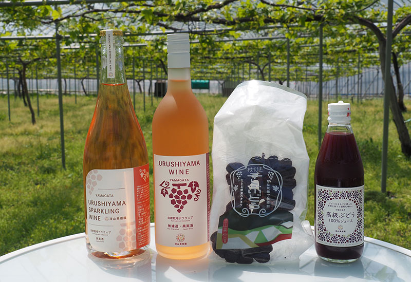 We have been growing grapes for over 80 years in Nanyo City, the birthplace of grapes in Yamagata Prefecture. The approximately 1,800 m² slope, all facing south, has good drainage and receives plenty of sunlight, allowing them to grow more than 30 varieties of grapes, including "Delaware" and large-grain grapes, with each bunch being carefully dealt with one by one.