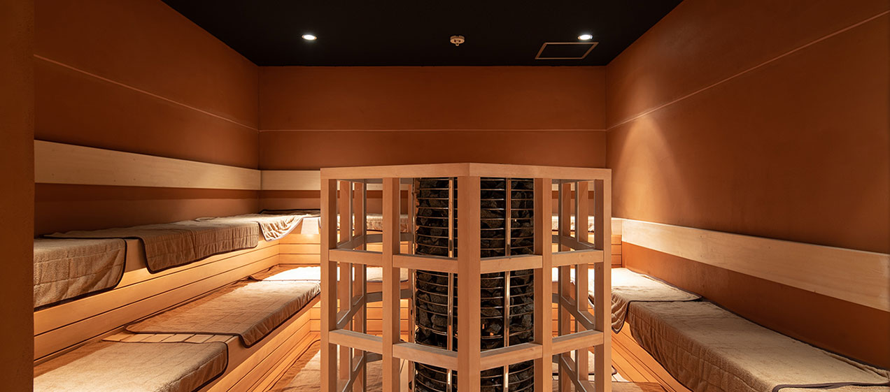The saunas are fully equipped, including the "Louryu Sauna" where water is poured over sauna stones heated by a stove to generate steam, the "High Temperature Sauna" where strong hot air over 100 degrees Celsius is powerful, and the "Steam Sauna" where you are slowly warmed up with low-temperature steam. Yes, it is recommended that you finish the product by soaking it in an extremely cold water bath.
