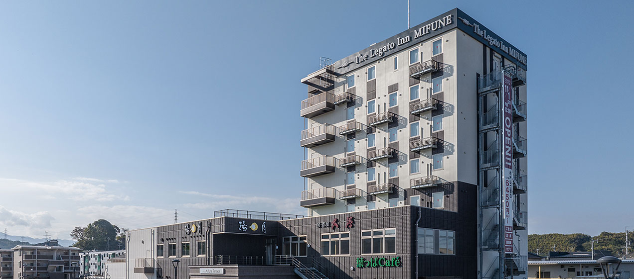 The Legato Inn MIFUNE, a hotel on Mifune Terrace, is a high-quality hotel with 49 rooms and offers a wealth of hospitality. You can relax with the best sleep in your room, and enjoy the night view of Mifune-cho from the upper floors.
