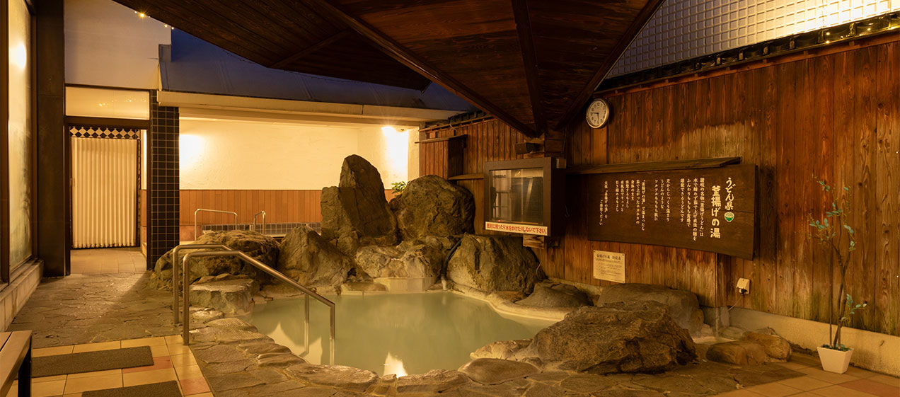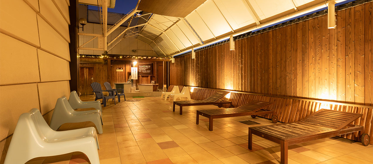 A wide variety of baths is available, including an open-air bath, jar baths, vibra baths, jet baths, and saunas, with the bath contents changing to reflect the atmosphere of each season. The alkaline, milky-white bath known as “Udon Prefecture Kamaage no Yu,” unique to Kagawa—often called the udon prefecture—is also featured.