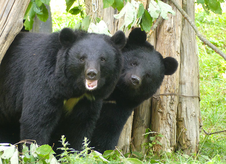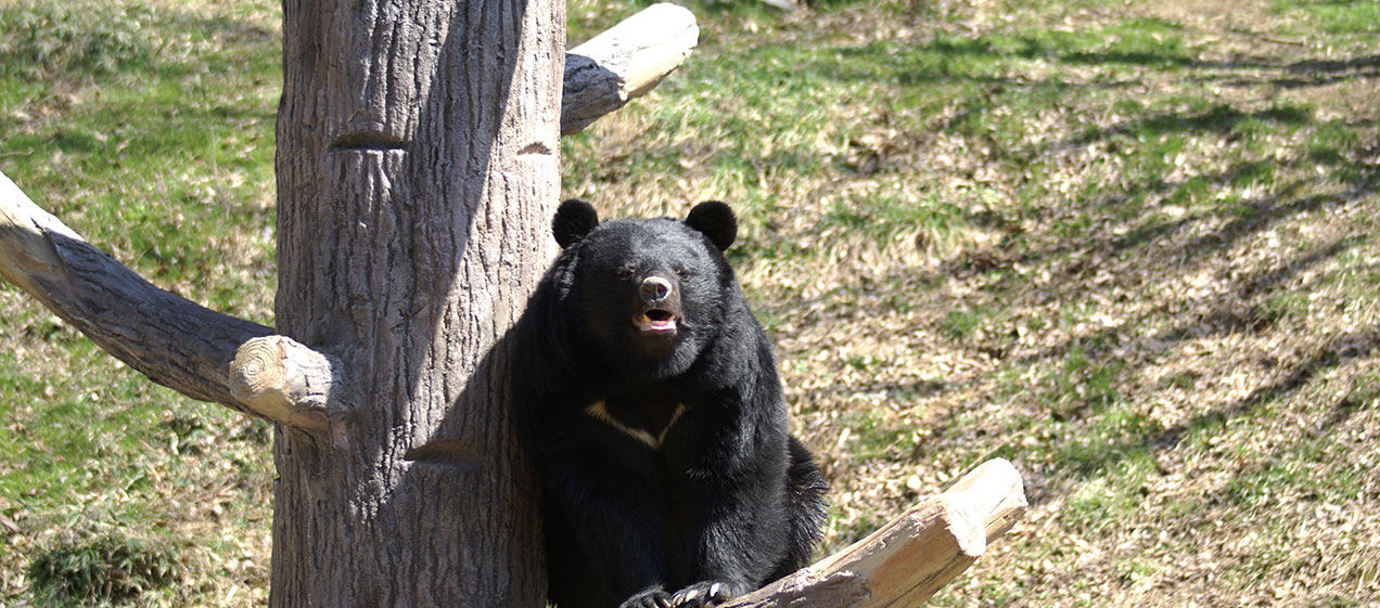 At "Tsukinowaguma Terrace," two female Asian black bears, "Hime (princess)" and "Rio," are kept and can be observed through glass panels that reveal their natural behavior. Their distinctive and expressive movements have drawn dedicated fans from across the country.