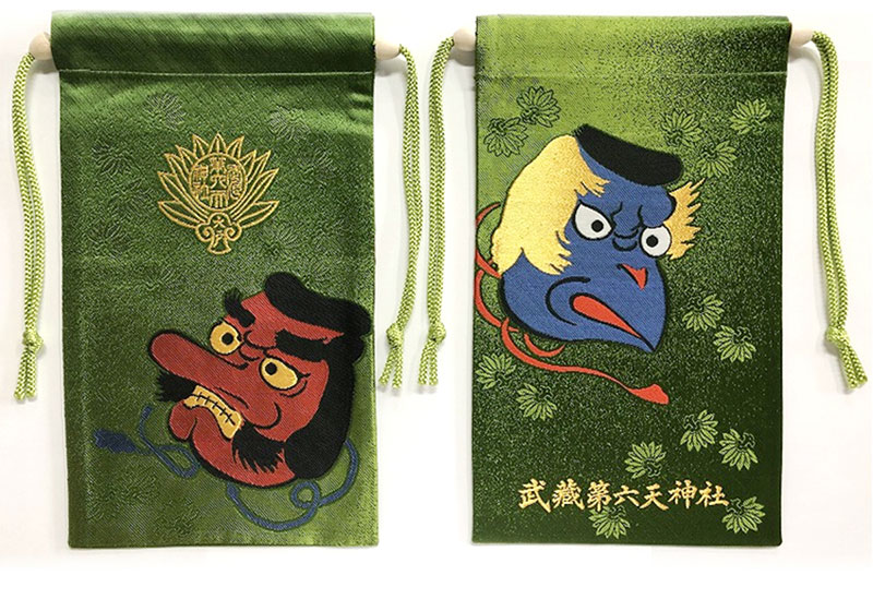 Goshuin stamps include an attached stamp that changes depending on the season or month and a paper insert with a gorgeously drawn picture of a tengu. There are two types of goshuincho-- green and black, and there is also a beautiful Nishijin-woven goshuincho bag with a large tengu on the front and a bird tengu on the back, which is recommended as a memento of your visit to the shrine.