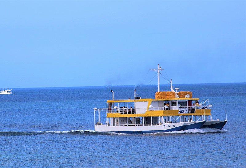 The "Orca" is an underwater sightseeing boat offering views of Okinawa’s vibrant sea directly from the cabin. In the underwater observation room, vivid tropical fish and sea turtles glide past the windows, creating memorable photo opportunities. It provides a relaxed alternative to diving and is enjoyed by guests of all ages, making it an appealing highlight of an Okinawa trip. A value-added plan that includes lunch is also well received.
