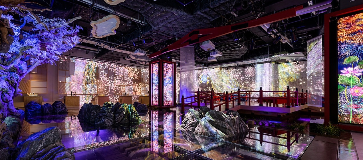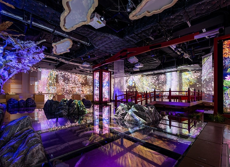 "Wa to Toma no Ma", where you can feel the spirit of the Japanese aesthetic "Wabi-Sabi", is a traditional and fantastical Japanese space with vivid seasonal scenery. Creatures originating from Japan gracefully dance and swim beneath your feet, allowing you to enjoy an elegant moment immersed in the scenery of flowers, birds, wind, and moon.