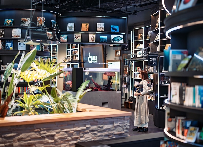 The "Question Room" is a library-like space where you can explore the knowledge and beauty of the world of water. Approximately 2,500 books, living specimens, videos, and more will stimulate your intellectual curiosity. The capybara in the beautiful aquarium and the colorful fish will soothe you.