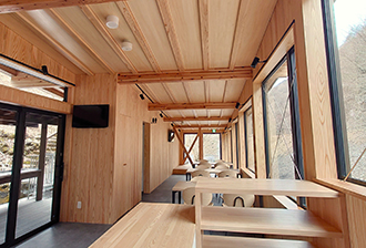 At the "New Rokando Tourist Center 'Orai no Rokando,'" guests can unwind in a warm, wood-scented space designed for relaxation. The center features a ticket counter and a restaurant serving dishes such as "Taki Nagashi Curry (curry inspired by flowing waterfalls)."" The Tourism and Local Products Area" offers local specialties and souvenirs, as well as tourist information for nearby attractions.