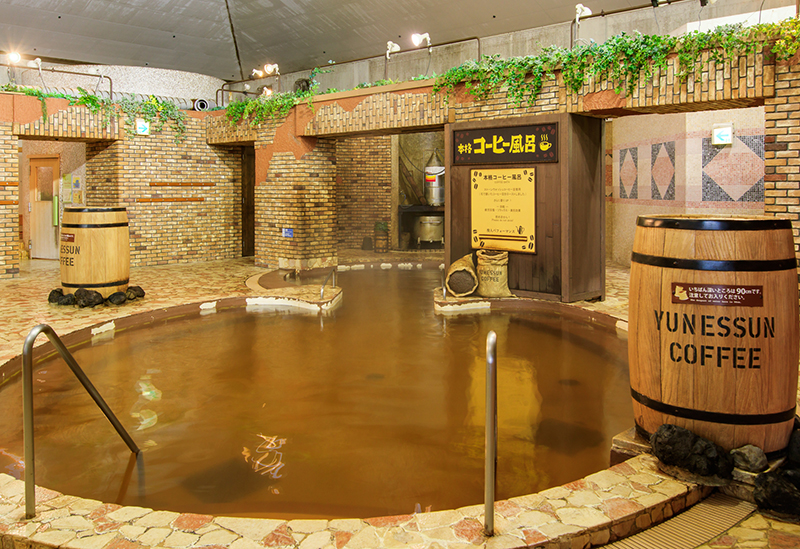 The indoor area of "Yunessun", the swimwear-friendly hot spring zone, features a flowing pool along with playful themed baths such as the wine bath and coffee bath. In the outdoor area, the water slide is heated, allowing for all-season fun in swimwear. The open-air bath overlooking the Hakone Outer Rim Mountains also provides a striking scenic view.