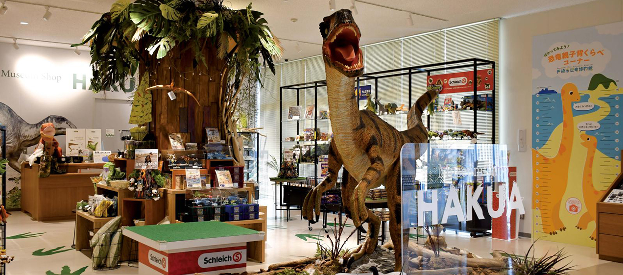 "Museum Shop HAKUA" has original museum goods, elaborate figurines that give you a glimpse of the world of dinosaurs, stuffed animals, sweets, and even real fossils, making it unique to a museum shop. You're sure to find a souvenir that will remind you of your trip.