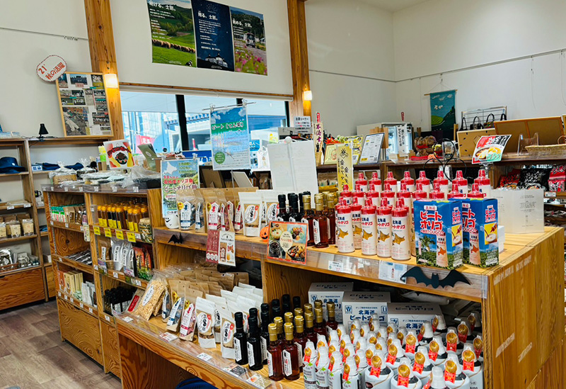 The open and bright cafe and social space is equipped with warm wooden tables and chairs, and is recommended as a rest area during a drive. Exhibitions, special events, and other events by various organizations in Shibetsu City are also held here, and information on local events is also provided.