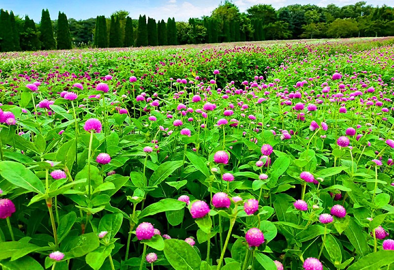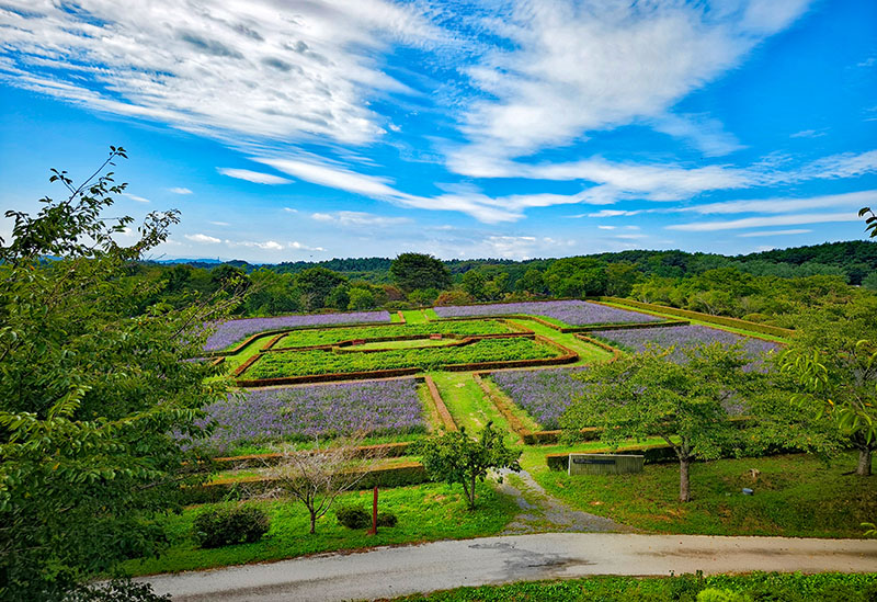 "Fragrant Breeze: A Herb Garden", "Yumemigaoka Garden", and 2Rainbow Hill Garden" showcase seasonal blooms in harmony with the natural surroundings, creating a captivating landscape throughout the year. In summer, lavender begins to bloom in mid-June, followed by vibrant flowers such as anise hyssop, tall verbena, and globe amaranth from July.