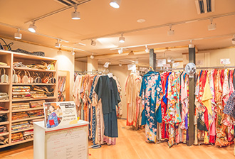 One floor of the store is lined with a wide variety of kimonos in a variety of colors and designs, allowing customers to choose their favorite one depending on the season and occasion. Coordinating a complete kimono outfit with items such as obi sash, sandals, and bags will make your Kyoto sightseeing even more enjoyable.