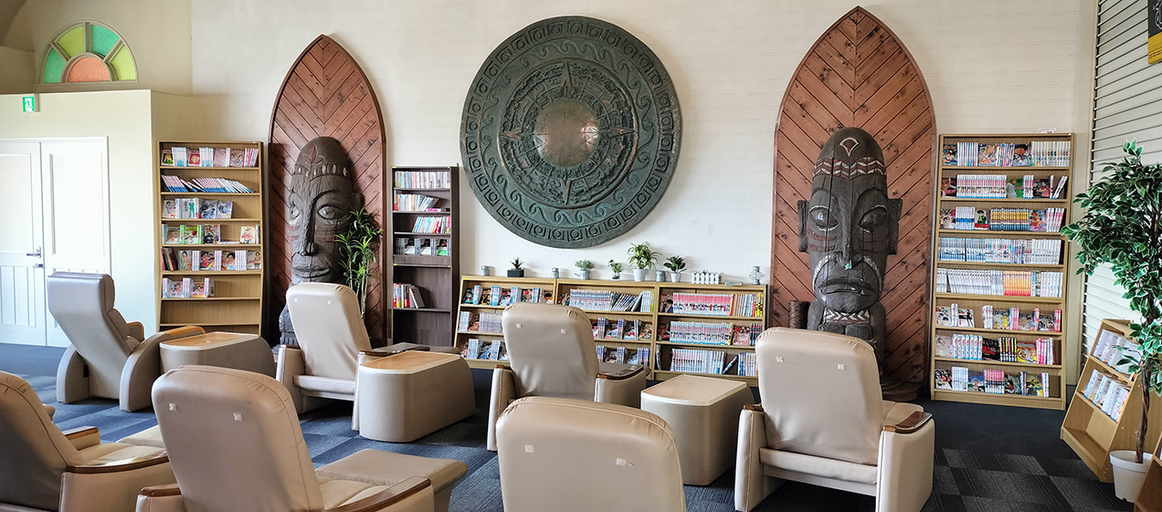 The facility features a full range of body care services, including exfoliation treatments, foot care, and therapeutic massage, alongside a sports club equipped with training machines available for an additional 300 yen on top of the hot spring admission fee, as well as a cut house and rental spaces. Time can be spent beyond the baths, creating a well-used setting for rest and social gatherings.