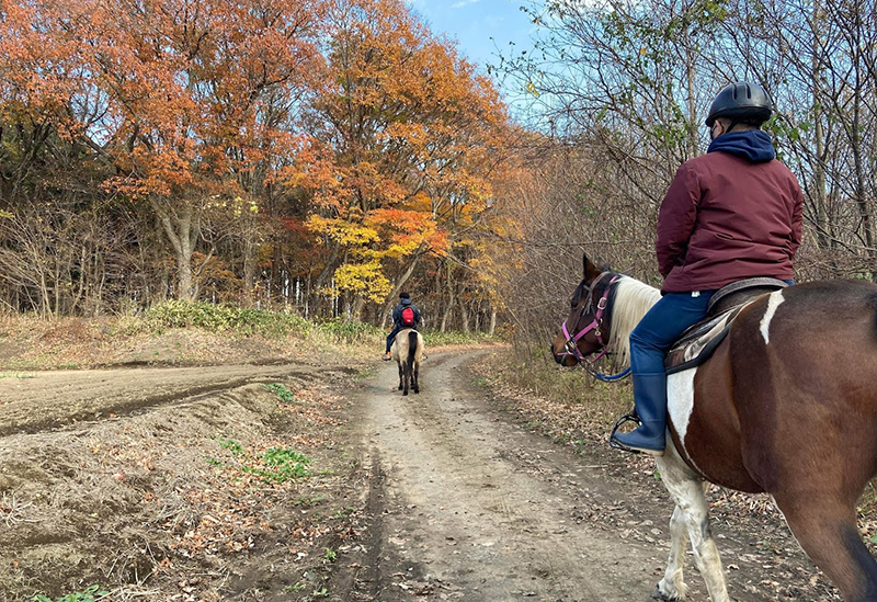 Enjoy the ever-changing beauty of the seasons on horseback - ride beneath blooming cherry blossoms in spring, through tunnels of fresh greenery in early summer, and feel the cool breeze of nature in midsummer. In autumn, admire the brilliant colours of the foliage, and in winter, journey across serene, untouched snowfields with only the sound of your horse’s steps.