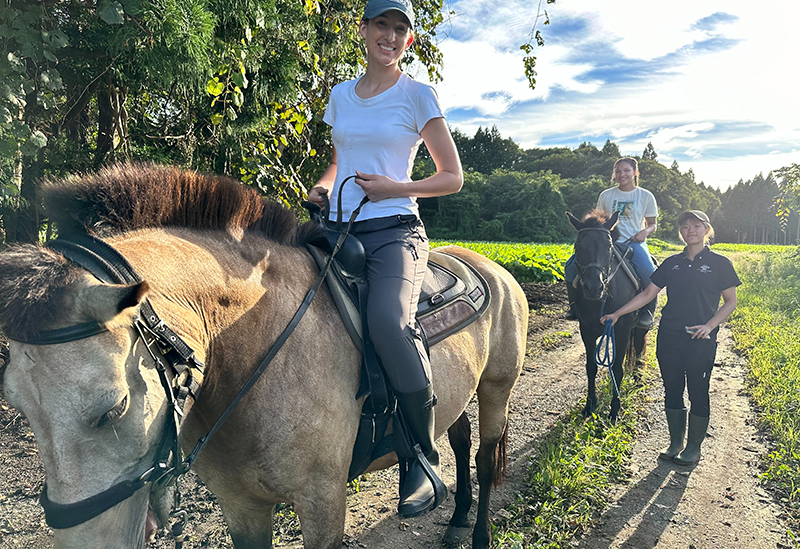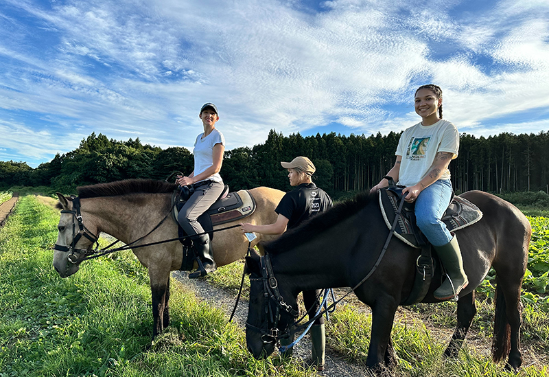 Horse trekking through the rich natural surroundings of Lake Ogawara in Misawa City, Aomori Prefecture offers a peaceful escape from daily stress. Let the gentle rhythm of the ride ease your mind and body, and enjoy a truly rejuvenating moment as you share the trail with your horse.