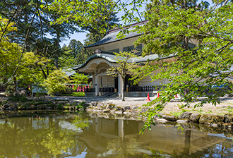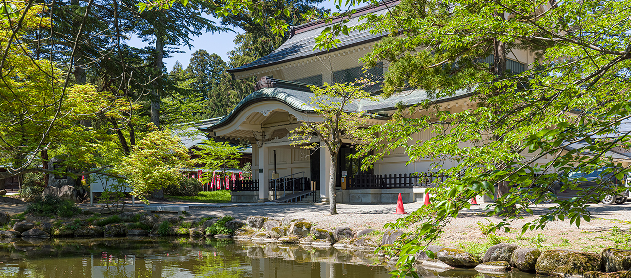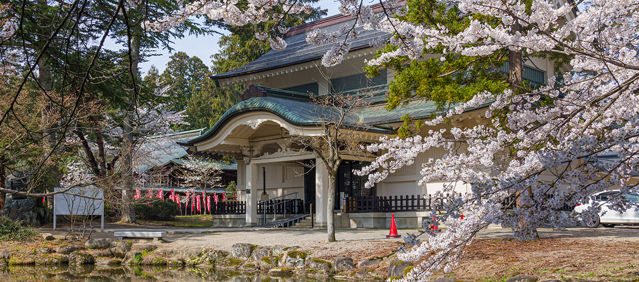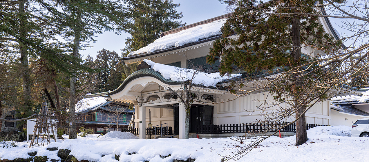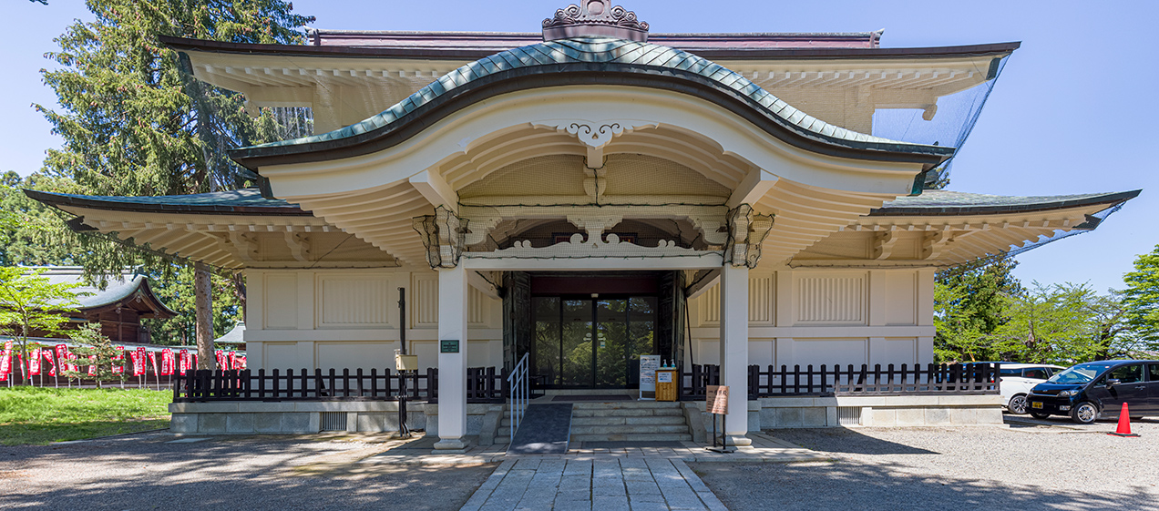 The Keishoden Hall, which has been designated a nationally registered tangible cultural property, opened in 1923 (Taisho 12) as a treasure hall when Uesugi Shrine was rebuilt. It was designed by Ito Chuta, a professor emeritus at Tokyo Imperial University and a native of Yonezawa City, Yamagata. It is a representative early example of a fire-resistant concrete museum building.