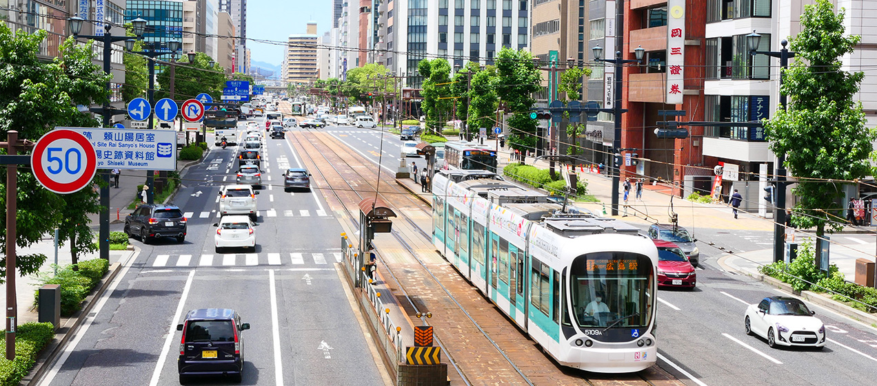 Hiroshima City is known both domestically and internationally for its beautiful blend of historical buildings and seasonal nature. Gliding through city streets at a gentle pace, "Hiroden trams" have long been woven into everyday life in Hiroshima.