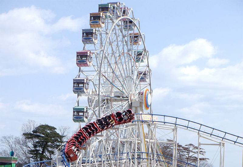 Attractions include "Yagiyama Cyclone," the double-loop "Corkscrew," and the classic "Go-karts," offering fun for guests of all ages. A mushroom-shaped sculpture from the park’s opening days also remains a beloved photo spot.