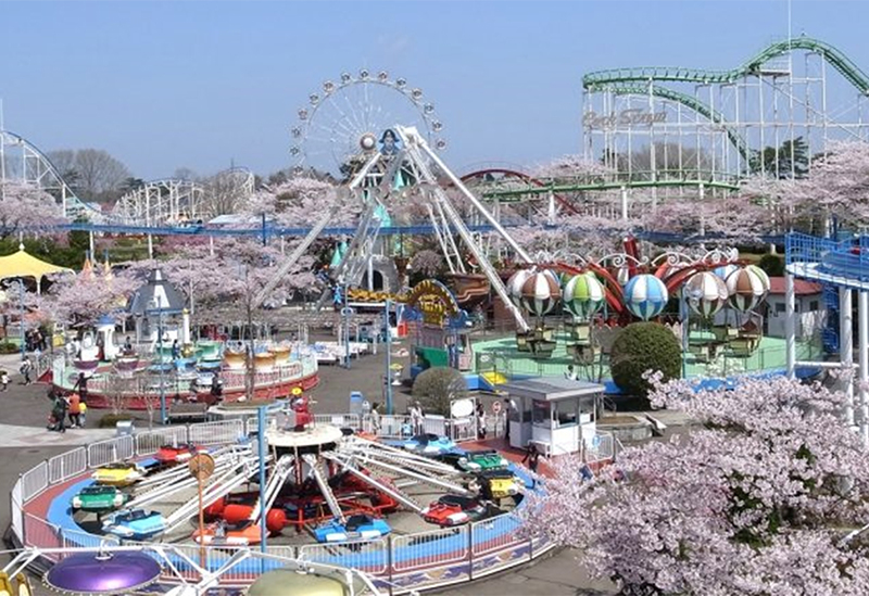 01. In April, enjoy cherry blossoms in full bloom across the amusement park.