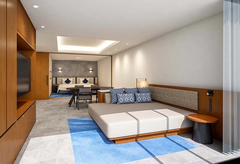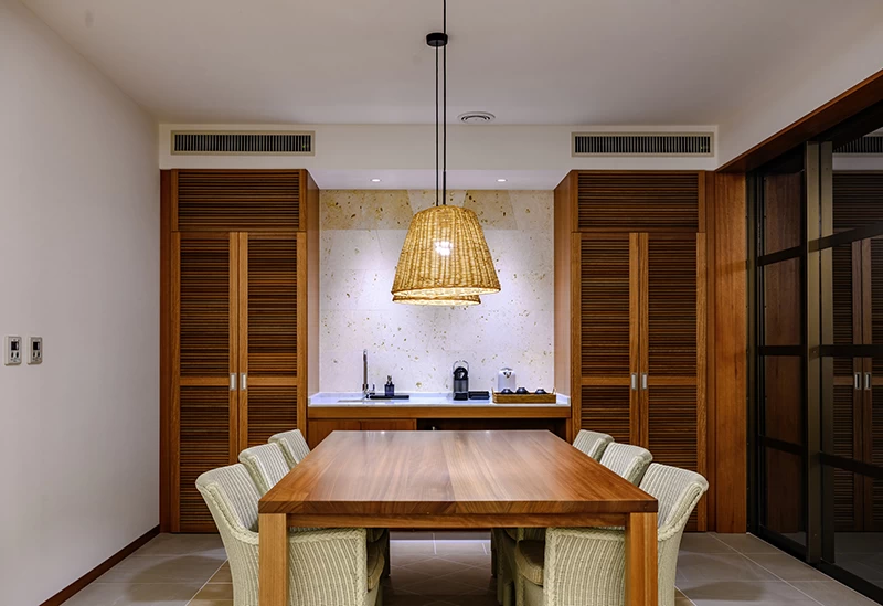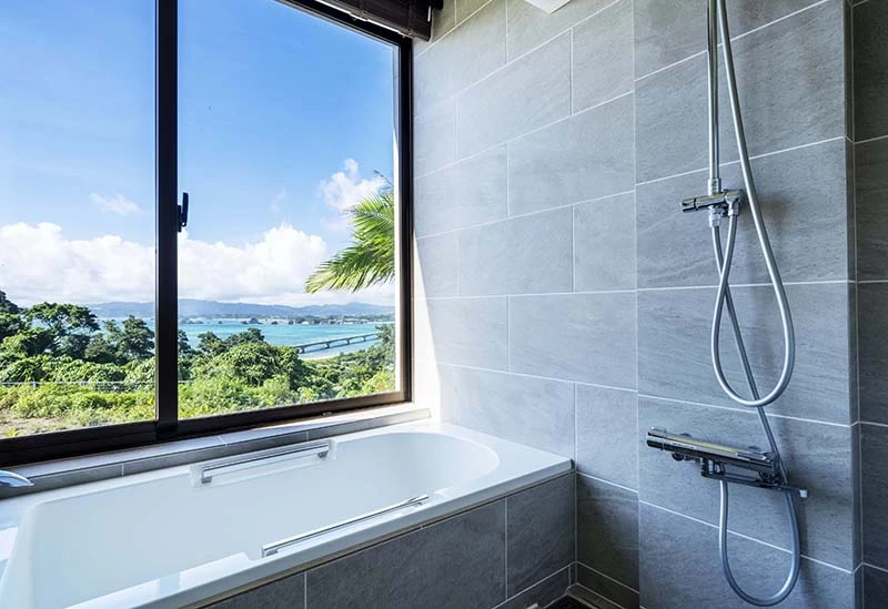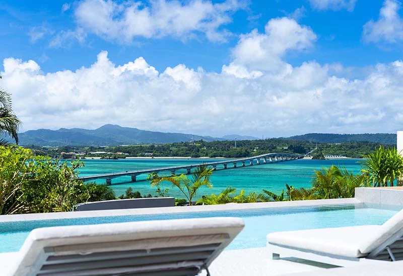 Opened in March 2025, this resort hotel on Kouri Island in northern Okinawa offers all-suite accommodations. Each room features sweeping ocean views, including the iconic Kouri Bridge, creating a truly memorable stay. The spacious 67.4 m² suites provide plenty of room to relax—enjoy a bath overlooking the sea, unwind on the daybed, or spend time your own way. A built-in kitchen allows for simple meal preparation, and a year-round pool on the first floor offers a calm, soothing escape.