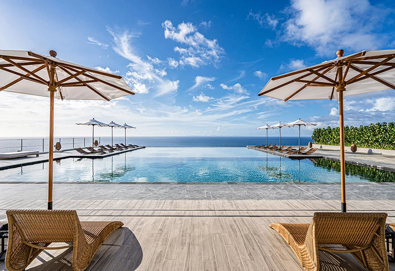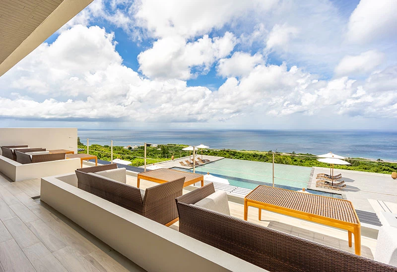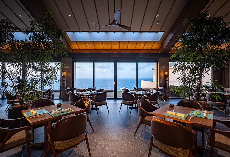 Perched at the highest point of Kouri Island, this luxury retreat is designed for adults seeking a serene escape. Guest rooms, the restaurant, and the pool all offer sweeping views of the East China Sea. The outdoor infinity pool creates the feeling of blending into the sea and sky. Dining is provided by La Bombance, the Michelin-starred Azabu restaurant making its Okinawa debut. Enjoy artfully crafted cuisine and moments of pure relaxation.