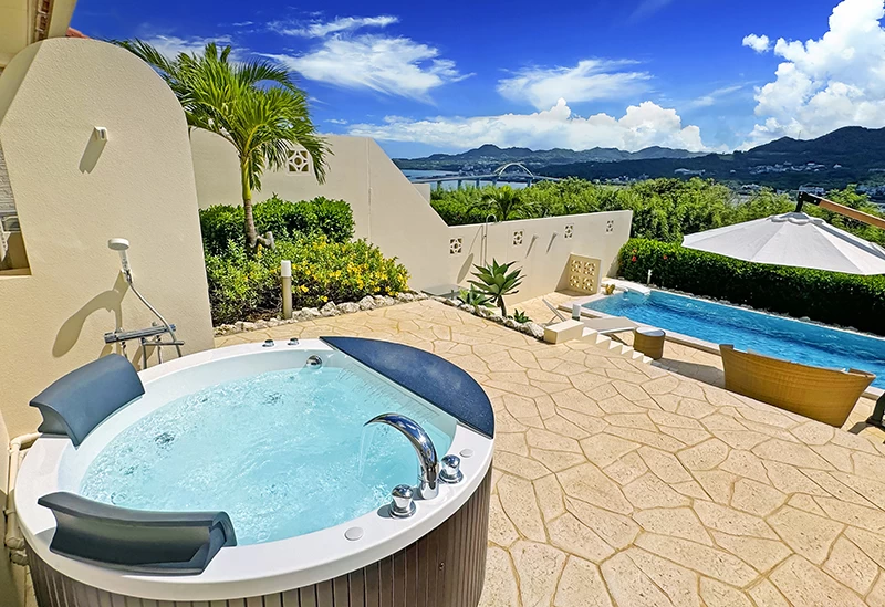 Resort Villa–KAPUKA Sesokojima” is a secluded hideaway on Sesoko Island in Okinawa. Each of its five villas is reserved for private use and features its own pool and open-air jet bath, offering an indulgent sense of privacy. Interiors are based in white and accented with wood, shells, and other Okinawan motifs, evoking the ambience of an overseas resort. On the terrace, the glow of the illuminated pool and the gentle sea breeze set the stage for tranquil evenings—enjoy a drink, gaze up at the star-filled sky, and savor a truly relaxing, grown-up moment.